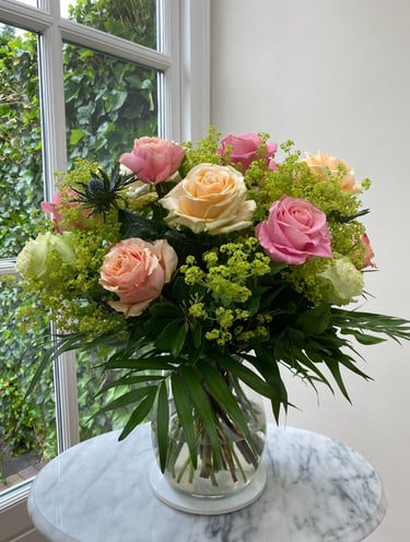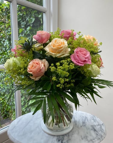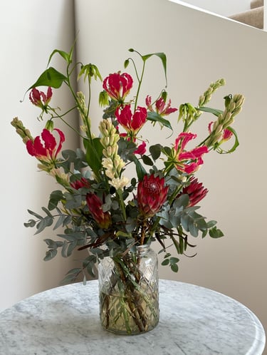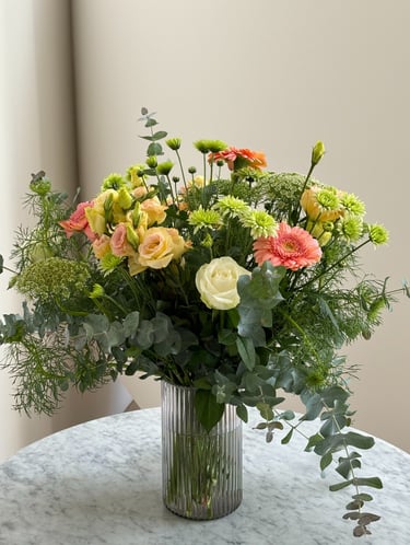 Please note: To ensure the highest quality, the arrangement in our gallery are subject to seasonal availability. Prices listed on the site serve as an initial guide, and unless stated otherwise, do not include the vases shown in the photography. Vases can be added to any order for an additional fee.